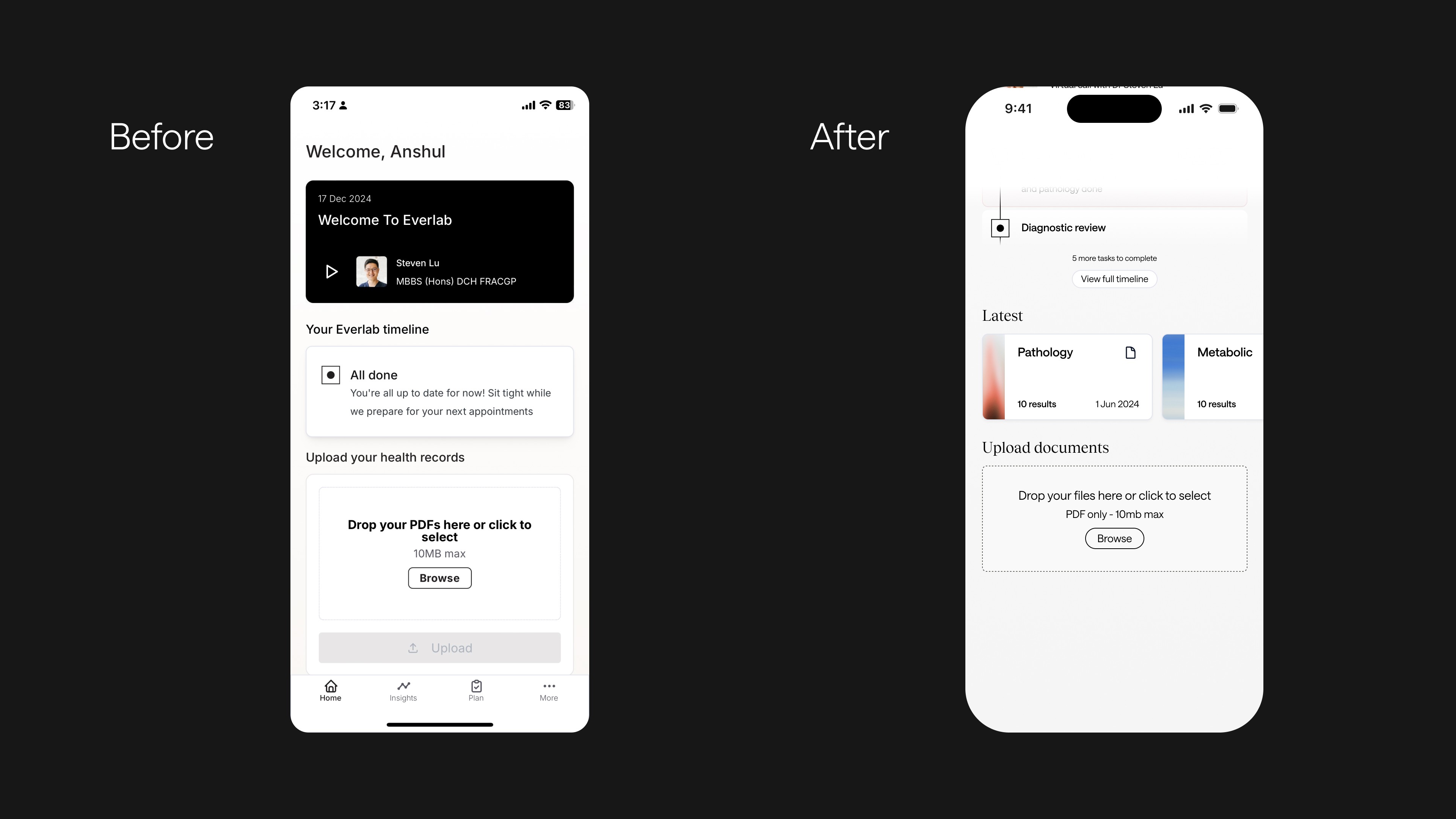 In a focused 2-week design sprint, I collaborated with Everlab, a well-funded healthcare startup ($3M+) revolutionising personalised healthcare through innovative diagnostic labs and digital solutions.