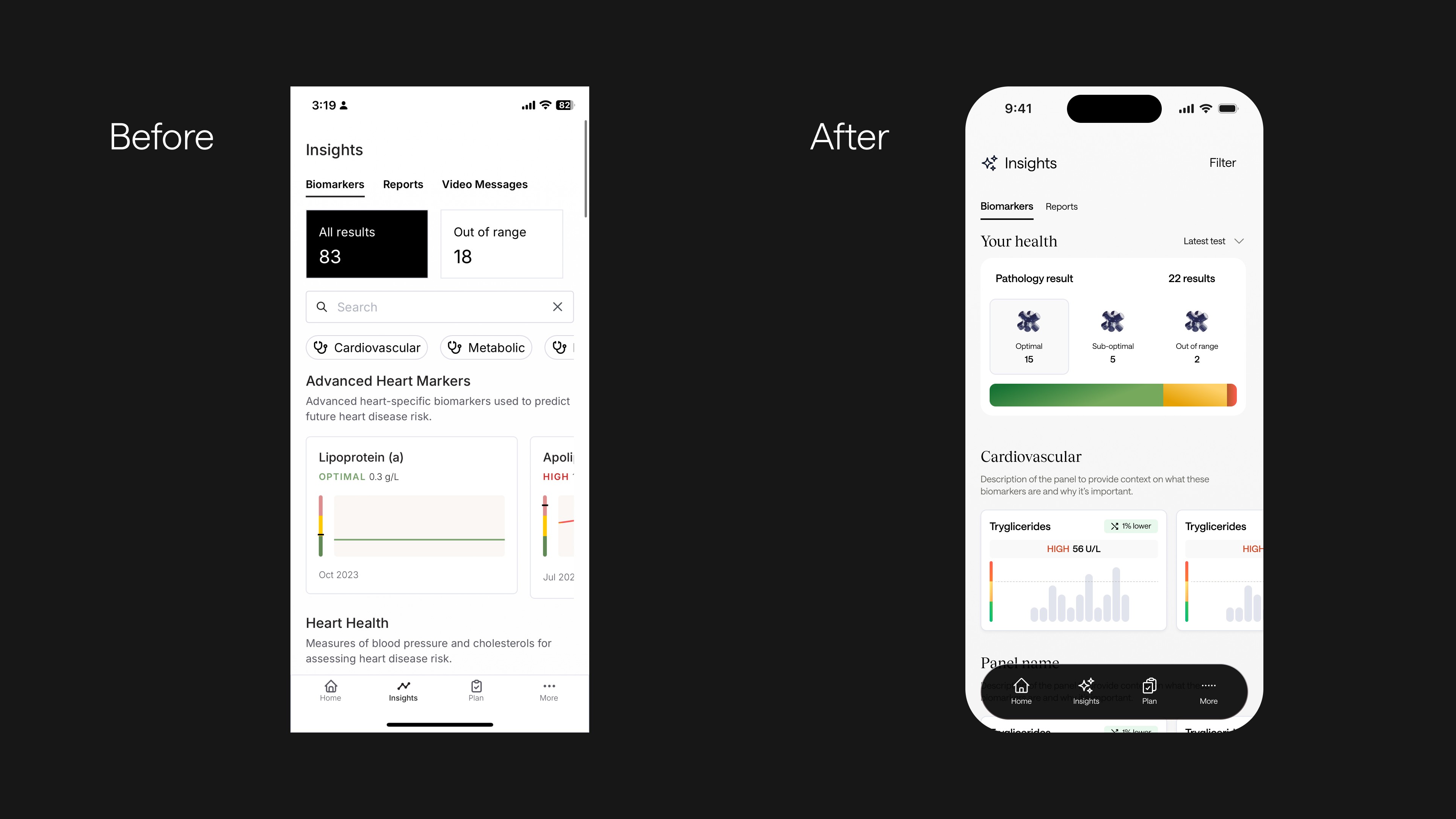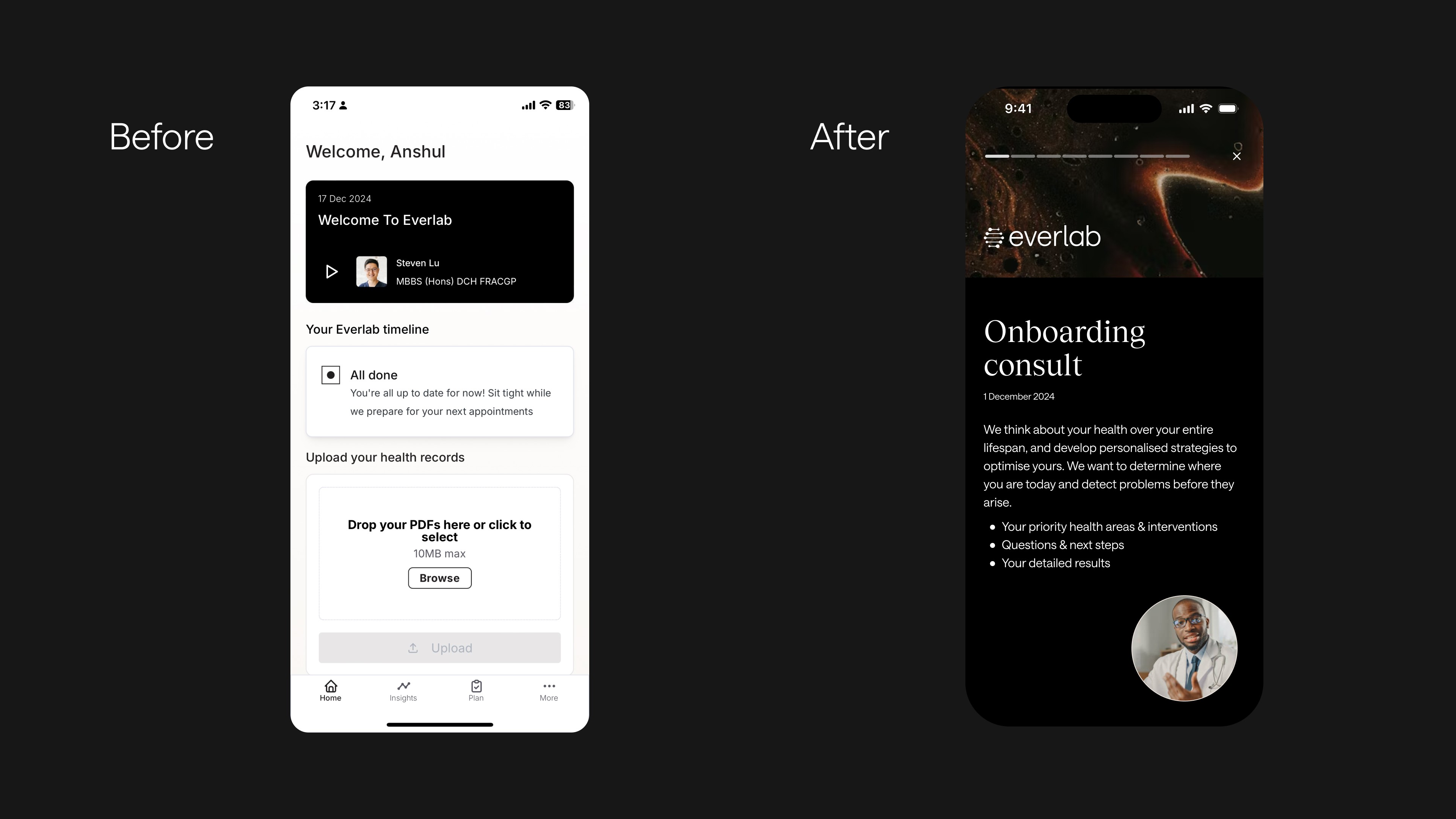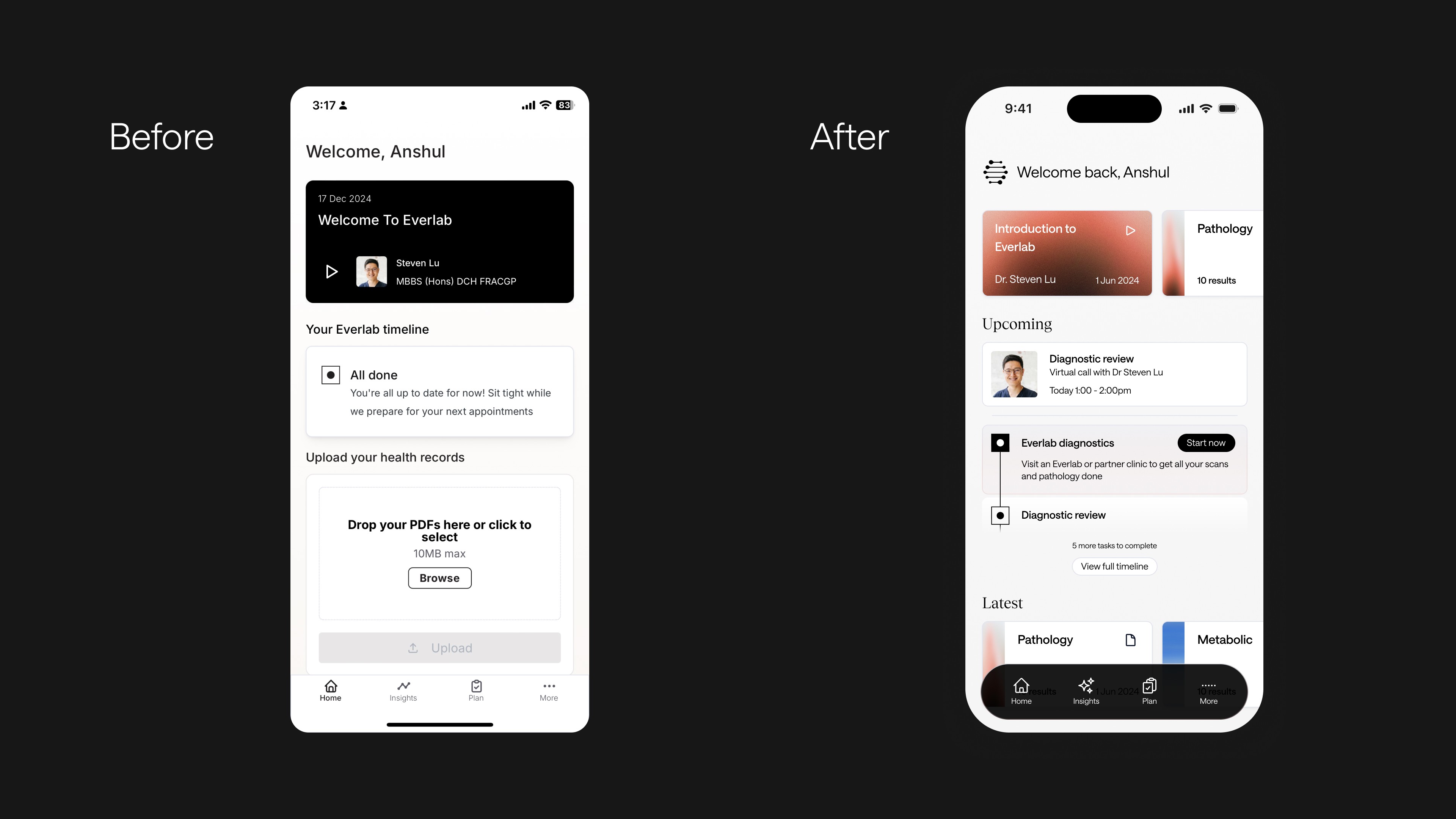 The redesigned experience supports Everlab's mission of early disease detection and personalised healthcare by: